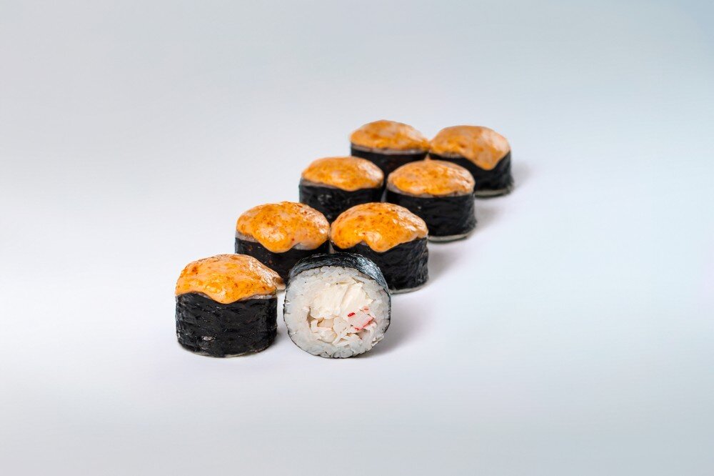Нори, рис, творожный сыр, снежный краб, яки шапка