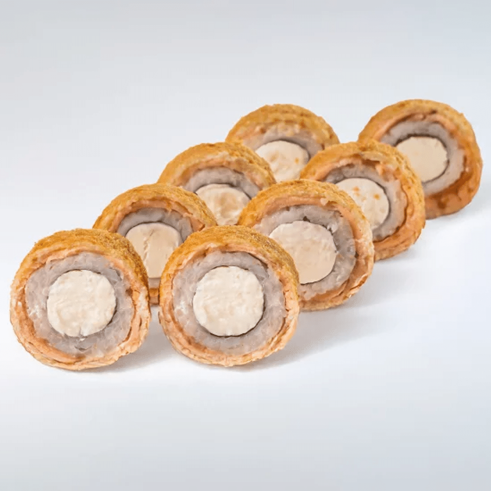 Нори, рис "SHINAKI", творожный сыр, норвежский лосось, кляр, панировочные сухари Данный продукт может содержать мелкие фрагменты косточек