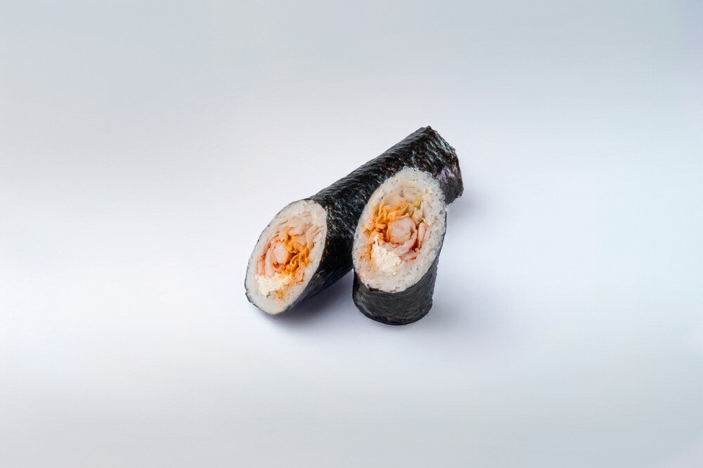Нори, рис, творожный сыр, креветки, айсберг, соус спайси