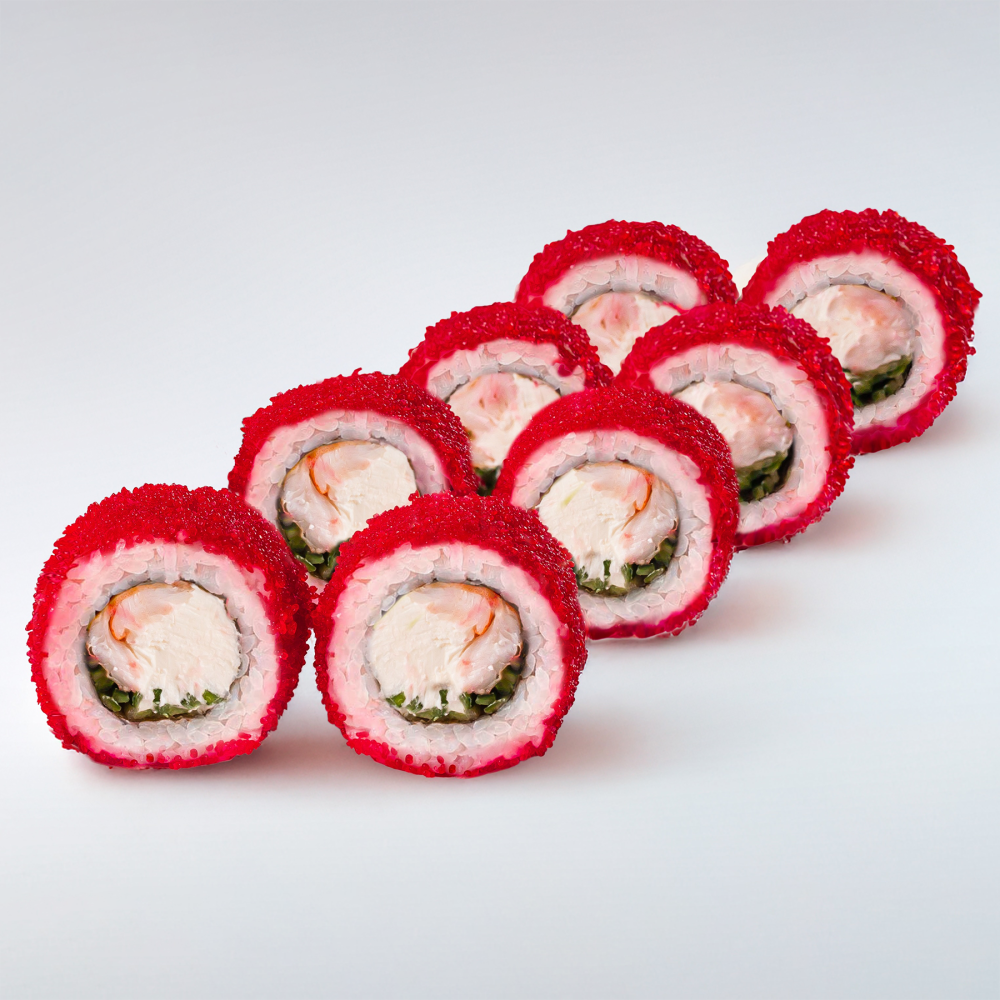 Нори, рис "SHINAKI", творожный сыр, креветки, огурцы, икра "Тобико"