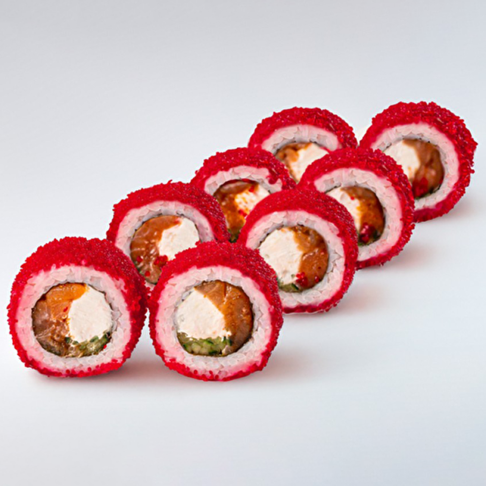 Нори, рис "SHINAKI", творожный сыр, лосось, огурцы, кунжут, соус ореховый